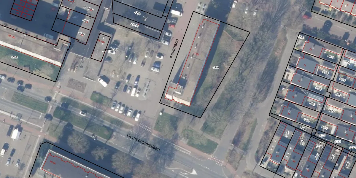 Het perceel waarop Kostmand 91 staat heeft een oppervlakte van 1605 m². Dit is een zeer groot perceel. De perceeloppervlakte wordt geregistreerd door het Kadaster. Gedetailleerde informatie over de maten van dit perceel kunt u vinden in het rapport Kadastrale kaart met maatvoering van Kostmand 91.