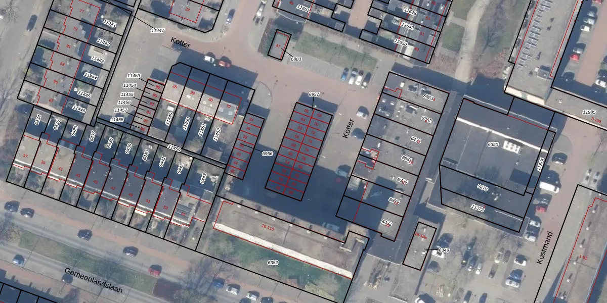 Het perceel waarop Kotter 76 staat heeft een oppervlakte van 378 m². Dit is een groot perceel. De perceeloppervlakte wordt geregistreerd door het Kadaster. Gedetailleerde informatie over de maten van dit perceel kunt u vinden in het rapport Kadastrale kaart met maatvoering van Kotter 76.