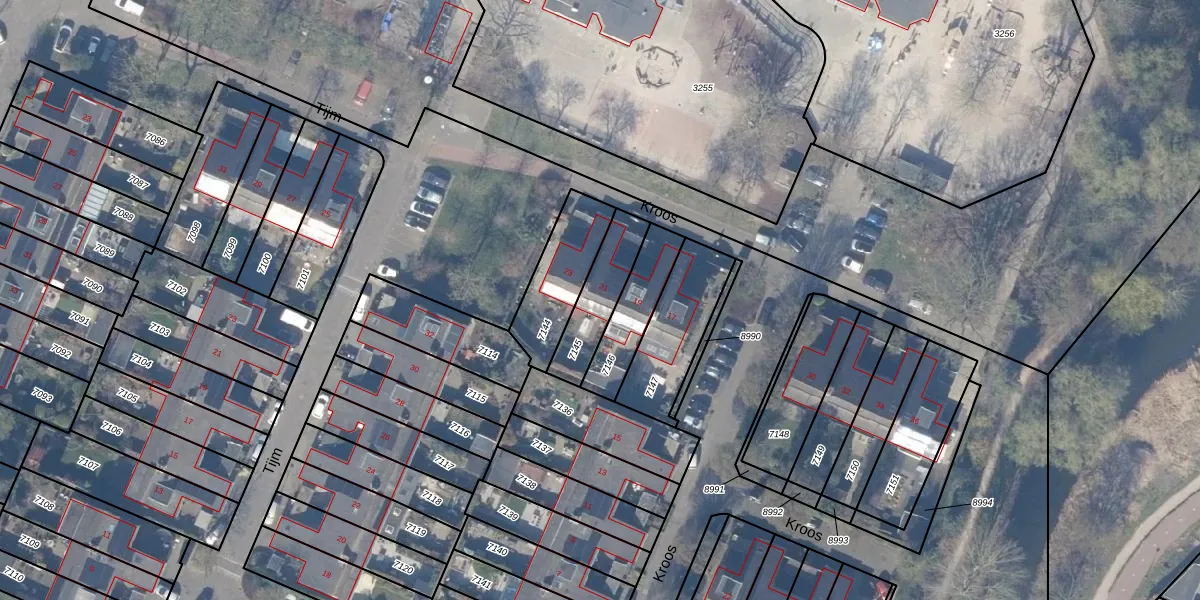 Het perceel waarop Kroos 21 staat heeft een oppervlakte van 184 m². Dit is een middelgroot perceel. De perceeloppervlakte wordt geregistreerd door het Kadaster. Gedetailleerde informatie over de maten van dit perceel kunt u vinden in het rapport Kadastrale kaart met maatvoering van Kroos 21.