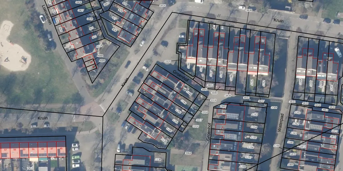 Het perceel waarop Kruin 33 staat heeft een oppervlakte van 222 m². Dit is een middelgroot perceel. De perceeloppervlakte wordt geregistreerd door het Kadaster. Gedetailleerde informatie over de maten van dit perceel kunt u vinden in het rapport Kadastrale kaart met maatvoering van Kruin 33.