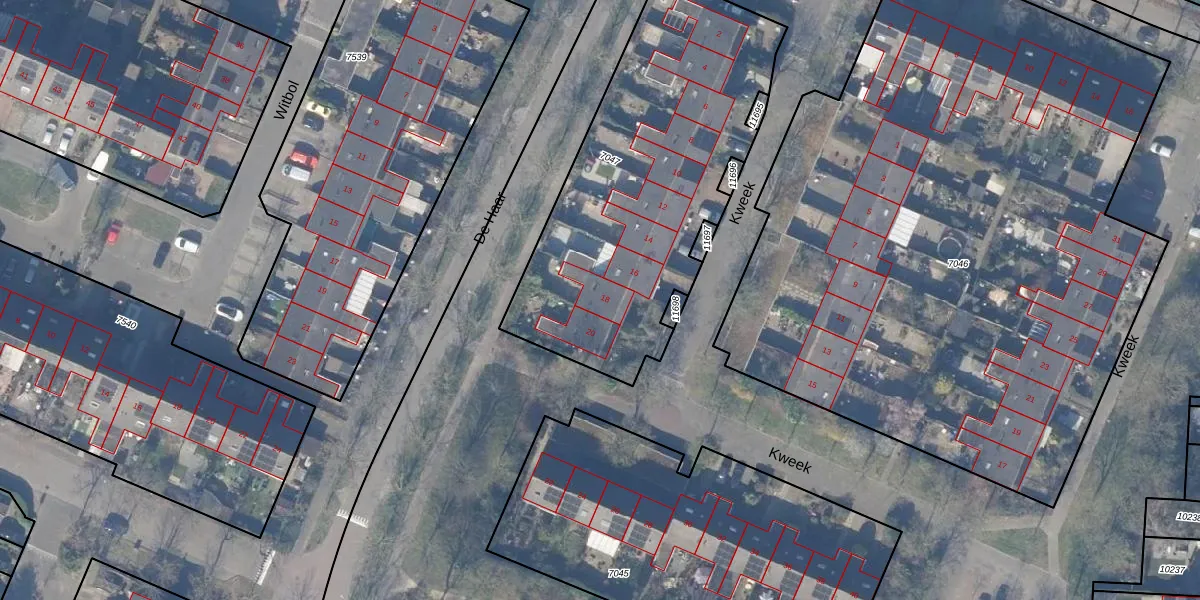 Het perceel waarop Kweek 18 staat heeft een oppervlakte van 1612 m². Dit is een zeer groot perceel. De perceeloppervlakte wordt geregistreerd door het Kadaster. Gedetailleerde informatie over de maten van dit perceel kunt u vinden in het rapport Kadastrale kaart met maatvoering van Kweek 18.