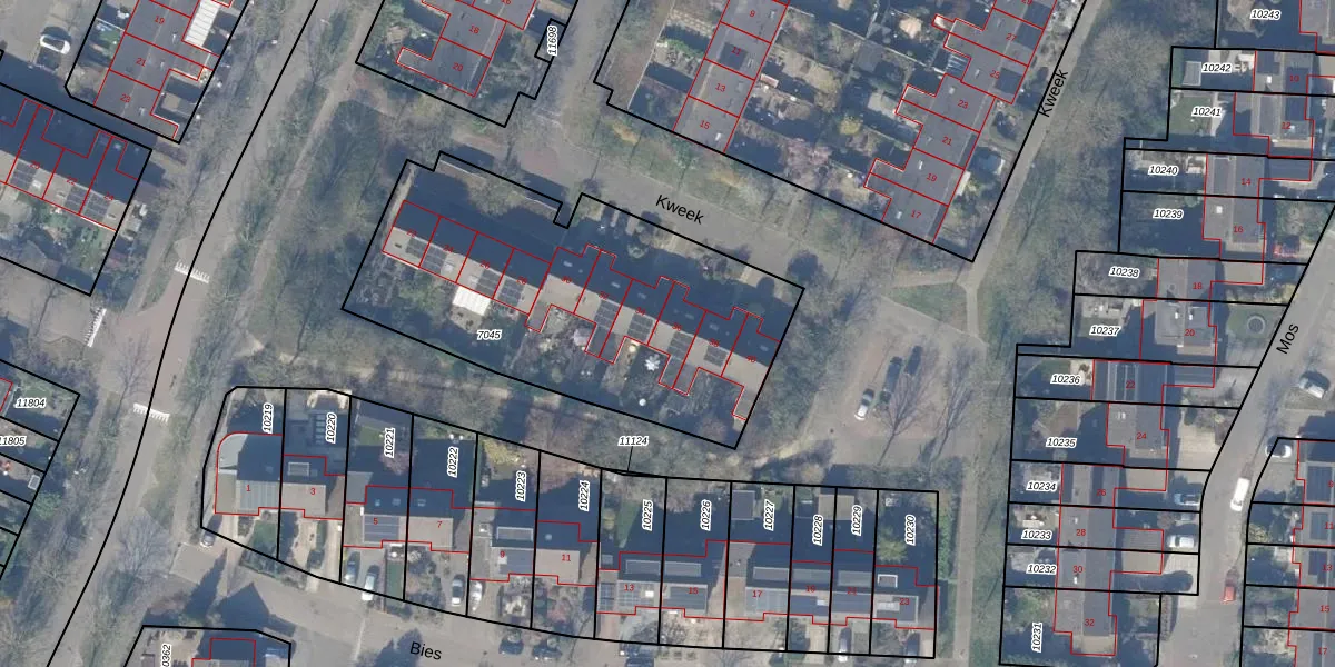 Het perceel waarop Kweek 36 staat heeft een oppervlakte van 1693 m². Dit is een zeer groot perceel. De perceeloppervlakte wordt geregistreerd door het Kadaster. Gedetailleerde informatie over de maten van dit perceel kunt u vinden in het rapport Kadastrale kaart met maatvoering van Kweek 36.
