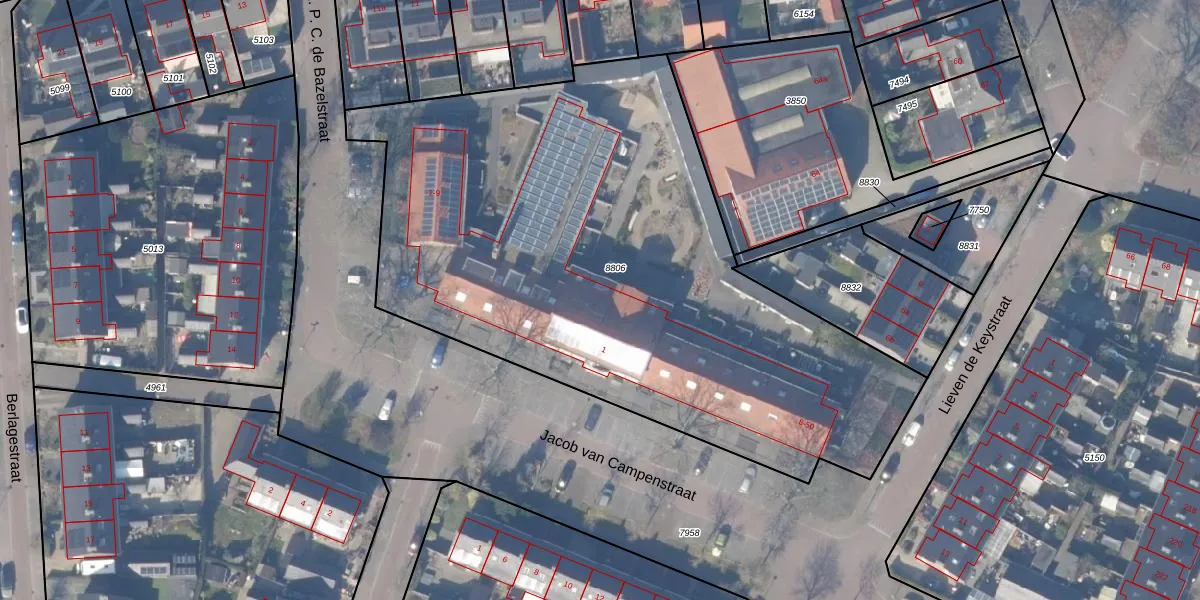 Het perceel waarop Lieven de Keystraat 24 staat heeft een oppervlakte van 3529 m². Dit is een zeer groot perceel. De perceeloppervlakte wordt geregistreerd door het Kadaster. Gedetailleerde informatie over de maten van dit perceel kunt u vinden in het rapport Kadastrale kaart met maatvoering van Lieven de Keystraat 24.