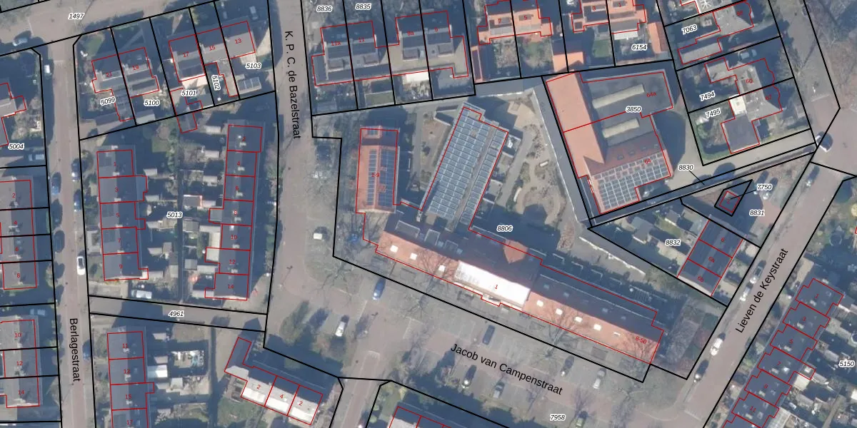 Het perceel waarop Lieven de Keystraat 40 staat heeft een oppervlakte van 3529 m². Dit is een zeer groot perceel. De perceeloppervlakte wordt geregistreerd door het Kadaster. Gedetailleerde informatie over de maten van dit perceel kunt u vinden in het rapport Kadastrale kaart met maatvoering van Lieven de Keystraat 40.