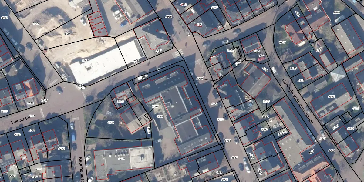 Het perceel waarop het adres ligt is HZN00-D-5098. De afkorting 'HZN00' staat voor kadastrale gemeente Huizen. De gemiddelde perceeloppervlakte in de kadastrale gemeente Huizen is 1437,02 m². Dit perceel is met zijn 1525 m² dus groter dan gemiddeld. Het grootste perceel in de kadastrale gemeente is 4,26 km². Het kleinste perceel heeft een oppervlakte van 0 m². Op het perceel liggen in totaal 14 adressen. In de Basisregistratie Kadaster (BRK) werden de grenzen van het perceel geregistreerd op 10-12-2009.