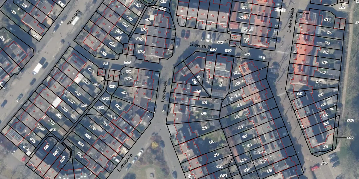 Het perceel waarop Loevestein 28 staat heeft een oppervlakte van 113 m². Dit is een middelgroot perceel. De perceeloppervlakte wordt geregistreerd door het Kadaster. Gedetailleerde informatie over de maten van dit perceel kunt u vinden in het rapport Kadastrale kaart met maatvoering van Loevestein 28.