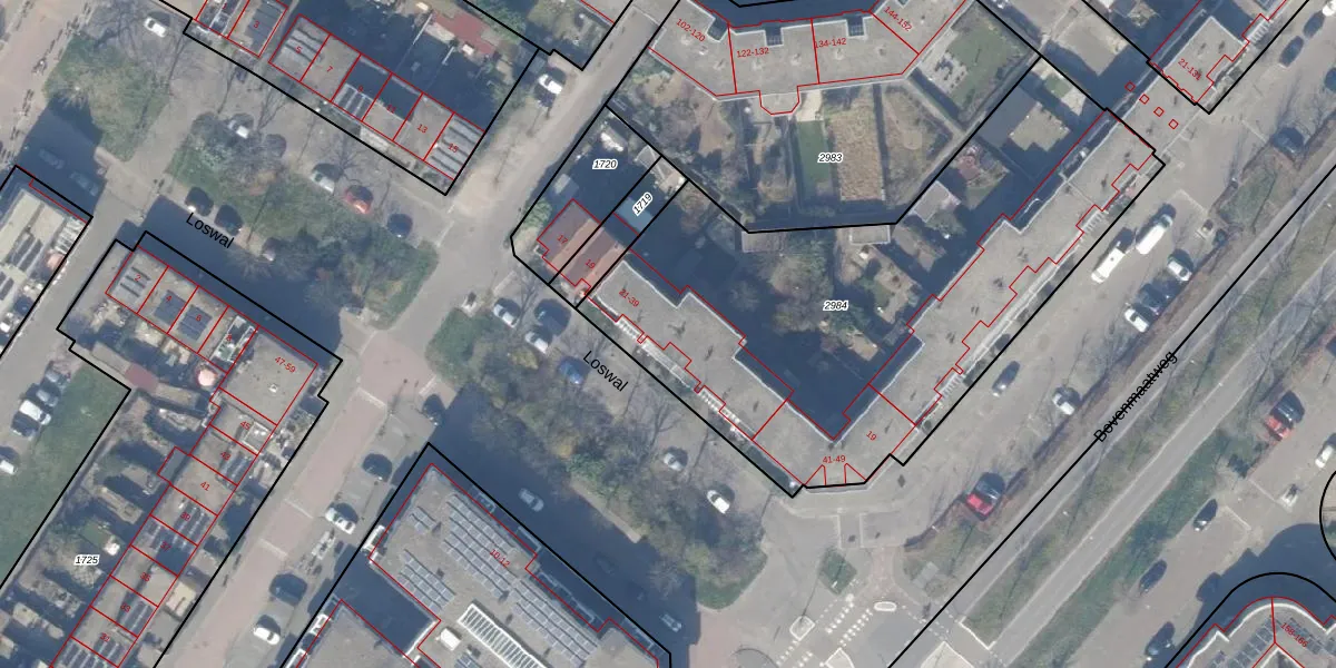 Het perceel waarop Loswal 29 staat heeft een oppervlakte van 2620 m². Dit is een zeer groot perceel. De perceeloppervlakte wordt geregistreerd door het Kadaster. Gedetailleerde informatie over de maten van dit perceel kunt u vinden in het rapport Kadastrale kaart met maatvoering van Loswal 29.