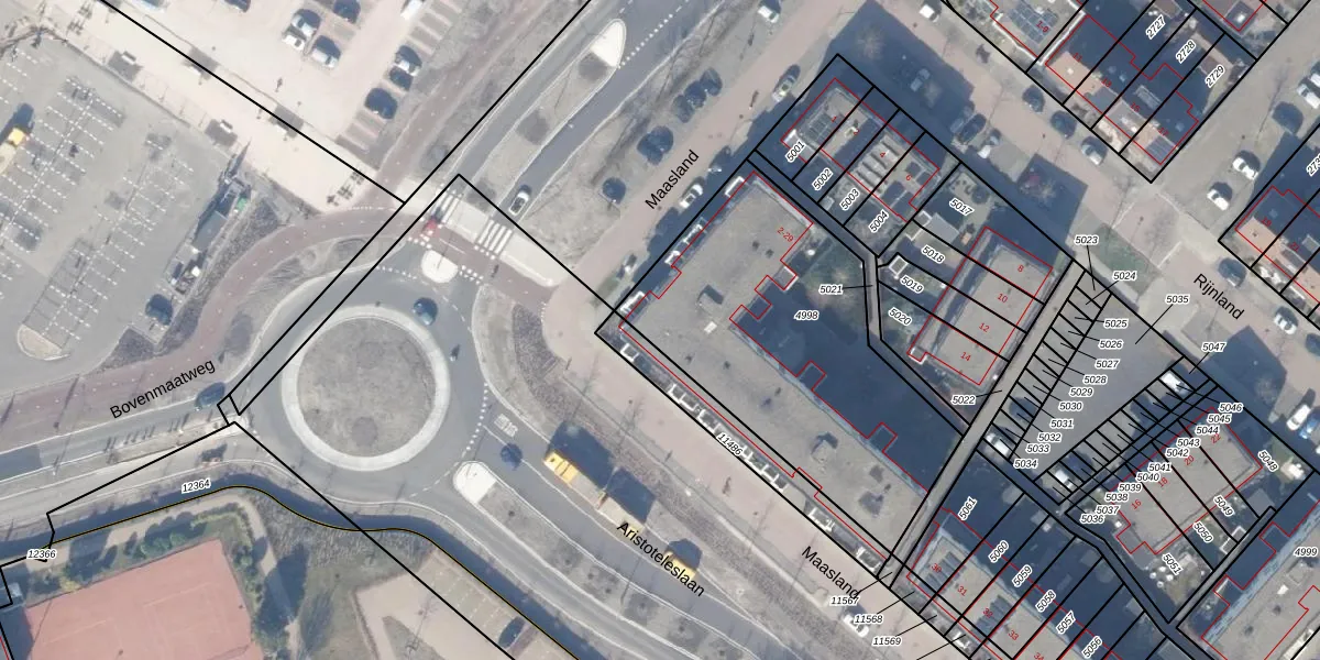 Het perceel waarop Maasland 14 staat heeft een oppervlakte van 1405 m². Dit is een zeer groot perceel. De perceeloppervlakte wordt geregistreerd door het Kadaster. Gedetailleerde informatie over de maten van dit perceel kunt u vinden in het rapport Kadastrale kaart met maatvoering van Maasland 14.