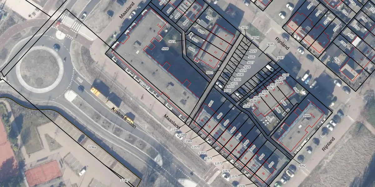 Het perceel waarop Maasland 17 staat heeft een oppervlakte van 1405 m². Dit is een zeer groot perceel. De perceeloppervlakte wordt geregistreerd door het Kadaster. Gedetailleerde informatie over de maten van dit perceel kunt u vinden in het rapport Kadastrale kaart met maatvoering van Maasland 17.