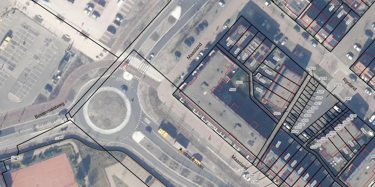 Het perceel waarop Maasland 2 staat heeft een oppervlakte van 1405 m². Dit is een zeer groot perceel. De perceeloppervlakte wordt geregistreerd door het Kadaster. Gedetailleerde informatie over de maten van dit perceel kunt u vinden in het rapport Kadastrale kaart met maatvoering van Maasland 2.