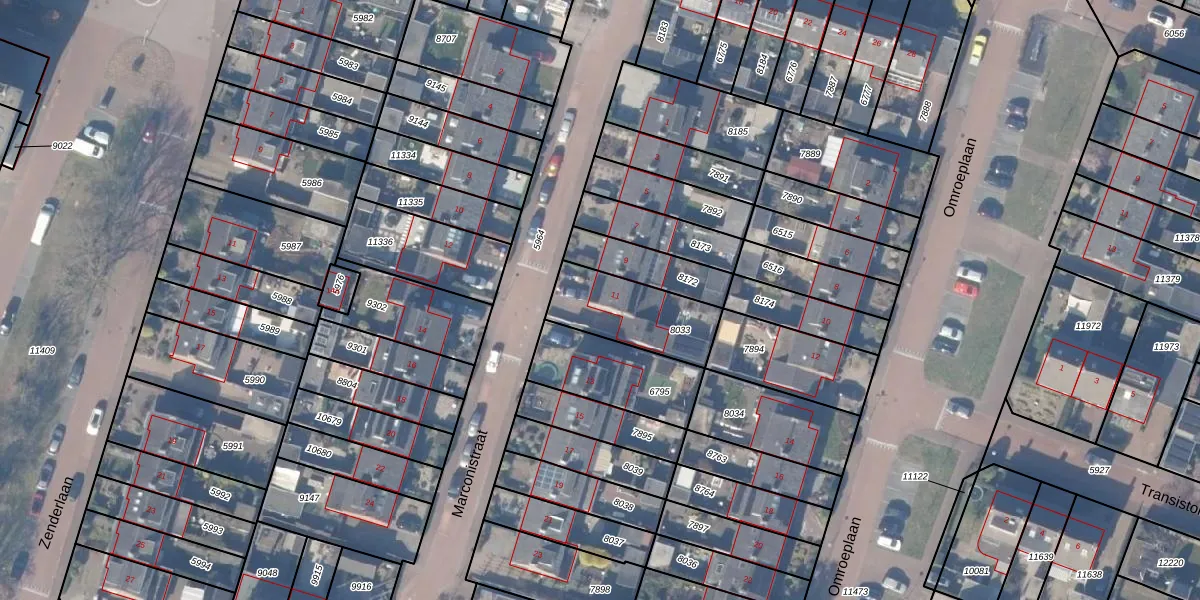 Marconistraat 11 is gelegen op kadastraal perceel HZN00C8033. Deze kadastrale aanduiding is uniek en wordt gebruikt door het Kadaster om eigendomsrechten en andere zakelijke rechten vast te leggen. Het perceel maakt onderdeel uit van de kadastrale gemeente Huizen.