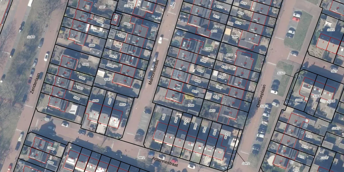 Marconistraat 21 is gelegen op kadastraal perceel HZN00C8037. Deze kadastrale aanduiding is uniek en wordt gebruikt door het Kadaster om eigendomsrechten en andere zakelijke rechten vast te leggen. Het perceel maakt onderdeel uit van de kadastrale gemeente Huizen.