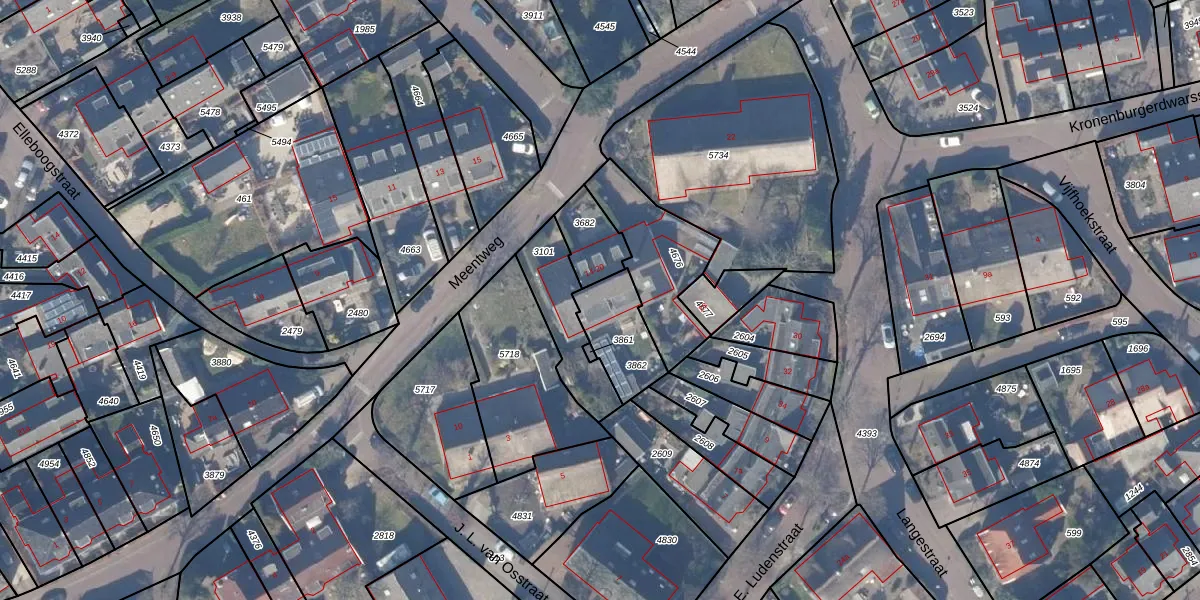 Gebruik de zoekbalk of klik op een perceel voor informatie over de adressen binnen dit perceel.