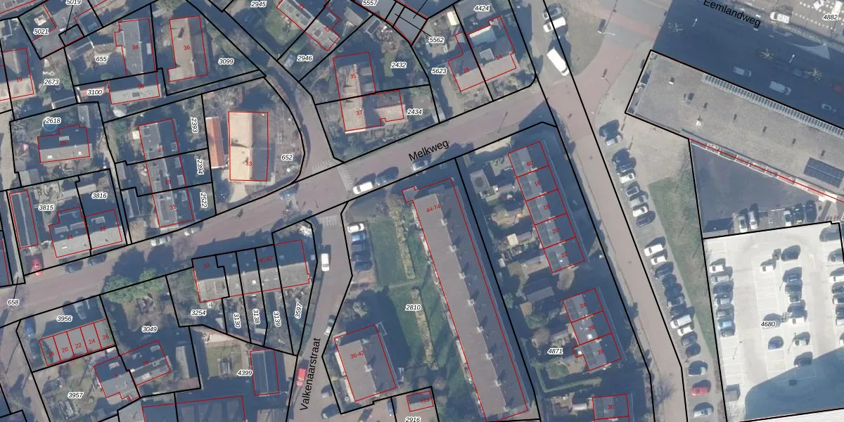 Het perceel waarop Melkweg 44 staat heeft een oppervlakte van 2110 m². Dit is een zeer groot perceel. De perceeloppervlakte wordt geregistreerd door het Kadaster. Gedetailleerde informatie over de maten van dit perceel kunt u vinden in het rapport Kadastrale kaart met maatvoering van Melkweg 44.