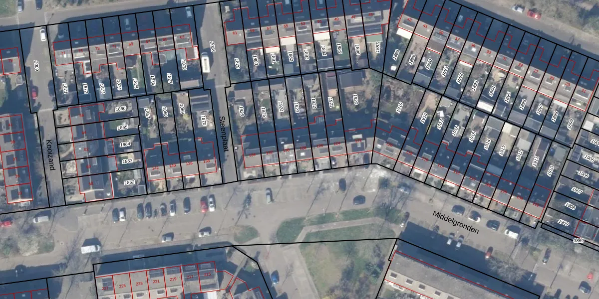Het perceel waarop Middelgronden 128 staat heeft een oppervlakte van 187 m². Dit is een middelgroot perceel. De perceeloppervlakte wordt geregistreerd door het Kadaster. Gedetailleerde informatie over de maten van dit perceel kunt u vinden in het rapport Kadastrale kaart met maatvoering van Middelgronden 128.