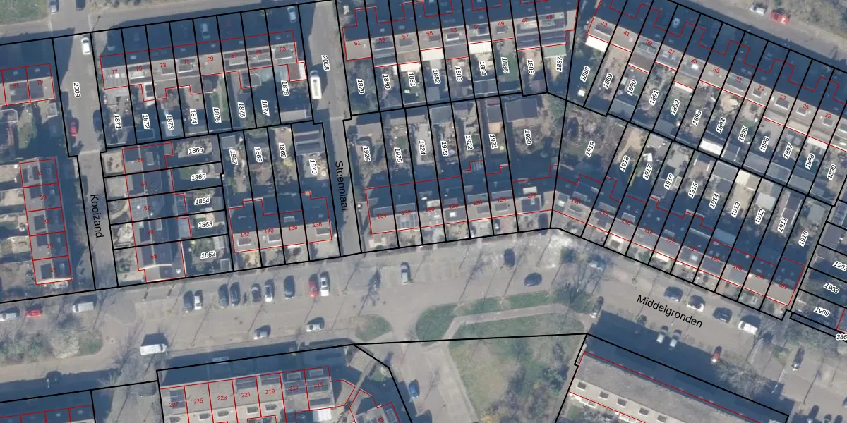 Het perceel waarop Middelgronden 130 staat heeft een oppervlakte van 186 m². Dit is een middelgroot perceel. De perceeloppervlakte wordt geregistreerd door het Kadaster. Gedetailleerde informatie over de maten van dit perceel kunt u vinden in het rapport Kadastrale kaart met maatvoering van Middelgronden 130.