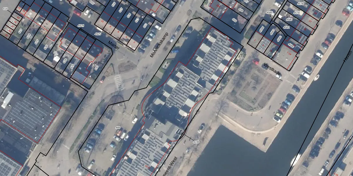 Het adres ligt op het perceel HZN00-E-489, dat zich in de kadastrale gemeente Huizen bevindt. Het perceel is met 4009 m² relatief groot. Het gemiddelde ligt in de kadastrale gemeente Huizen op 1439,59 m². De grootste perceeloppervlakte in de kadastrale gemeente is 4,26 km². De kleinste oppervlakte bedraagt 0 m². Er zijn 138 adressen aanwezig op het perceel. De laatste wijziging in het de Basisregistratie Kadaster (BRK) was op 06-01-2011.