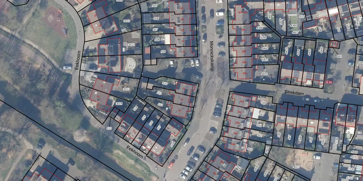 Het perceel waarop Monnickskamp 77 staat heeft een oppervlakte van 185 m². Dit is een middelgroot perceel. De perceeloppervlakte wordt geregistreerd door het Kadaster. Gedetailleerde informatie over de maten van dit perceel kunt u vinden in het rapport Kadastrale kaart met maatvoering van Monnickskamp 77.