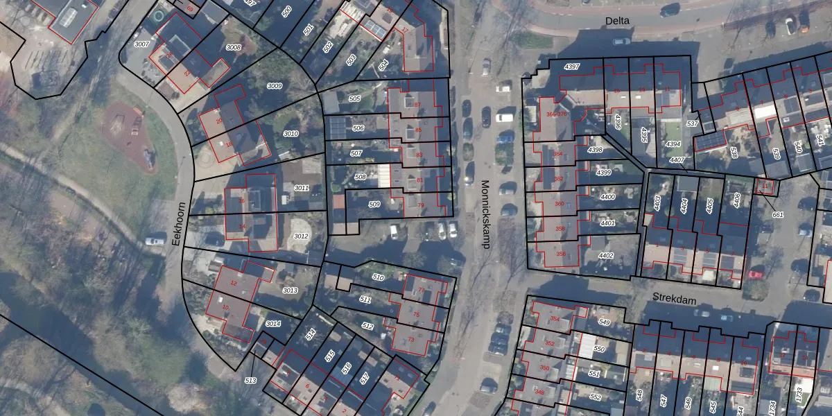 Gebruik de zoekbalk of klik op een perceel voor informatie over de adressen binnen dit perceel.