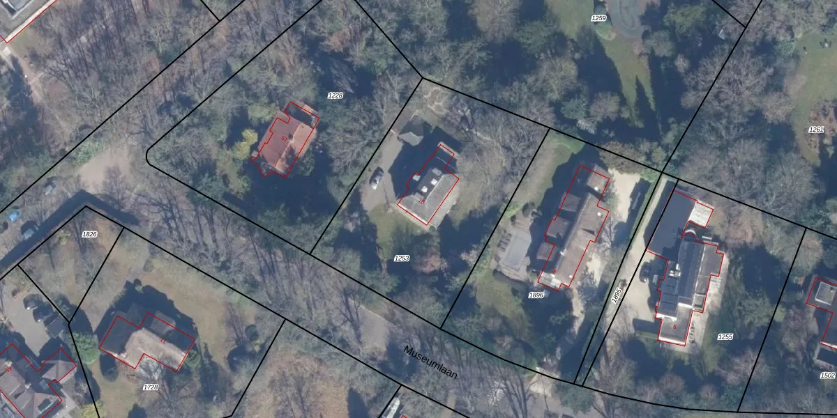 Het perceel waarop Museumlaan 10 staat heeft een oppervlakte van 1800 m². Dit is een zeer groot perceel. De perceeloppervlakte wordt geregistreerd door het Kadaster. Gedetailleerde informatie over de maten van dit perceel kunt u vinden in het rapport Kadastrale kaart met maatvoering van Museumlaan 10.