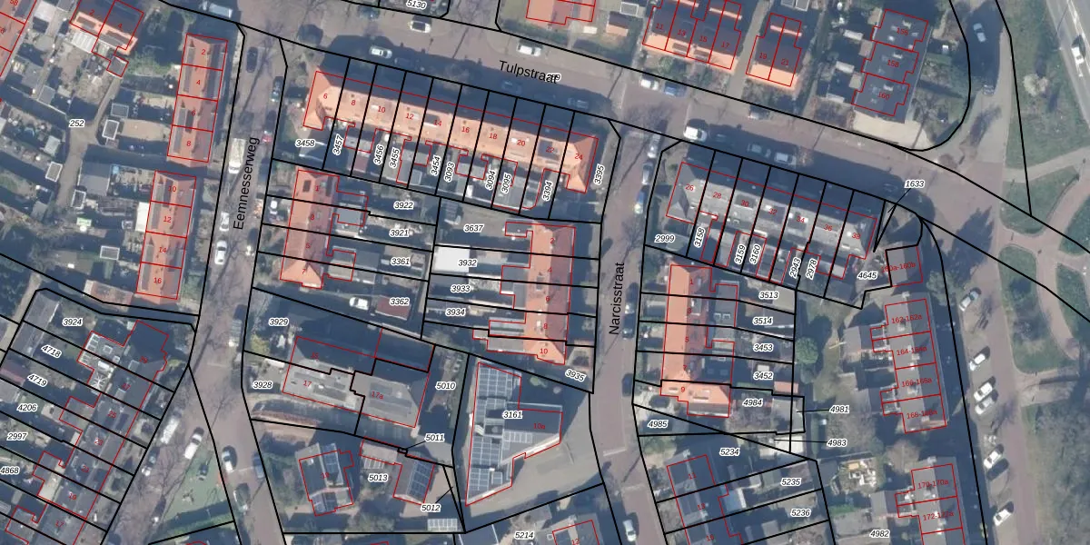 Het perceel waarop Narcisstraat 4 staat heeft een oppervlakte van 165 m². Dit is een middelgroot perceel. De perceeloppervlakte wordt geregistreerd door het Kadaster. Gedetailleerde informatie over de maten van dit perceel kunt u vinden in het rapport Kadastrale kaart met maatvoering van Narcisstraat 4.