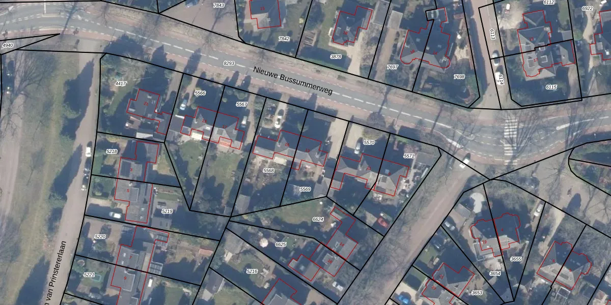 Nieuwe Bussummerweg 13 is gelegen op kadastraal perceel HZN00B5569. Deze kadastrale aanduiding is uniek en wordt gebruikt door het Kadaster om eigendomsrechten en andere zakelijke rechten vast te leggen. Het perceel maakt onderdeel uit van de kadastrale gemeente Huizen.