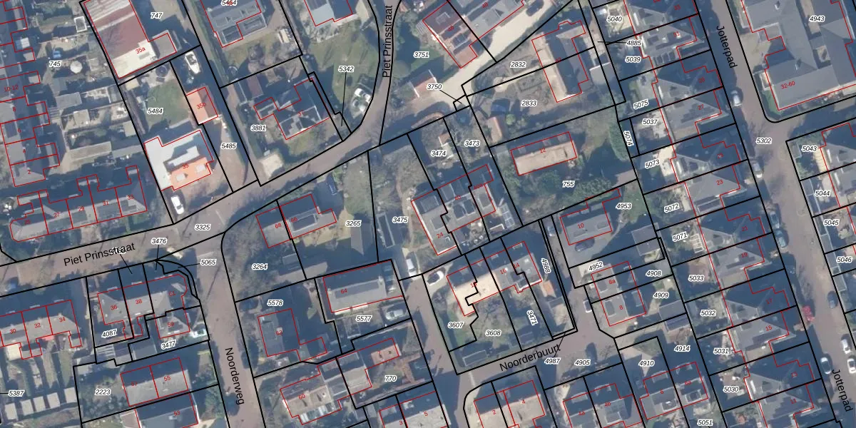 Het perceel waarop Noorderbuurt 24 staat heeft een oppervlakte van 454 m². Dit is een groot perceel. De perceeloppervlakte wordt geregistreerd door het Kadaster. Gedetailleerde informatie over de maten van dit perceel kunt u vinden in het rapport Kadastrale kaart met maatvoering van Noorderbuurt 24.
