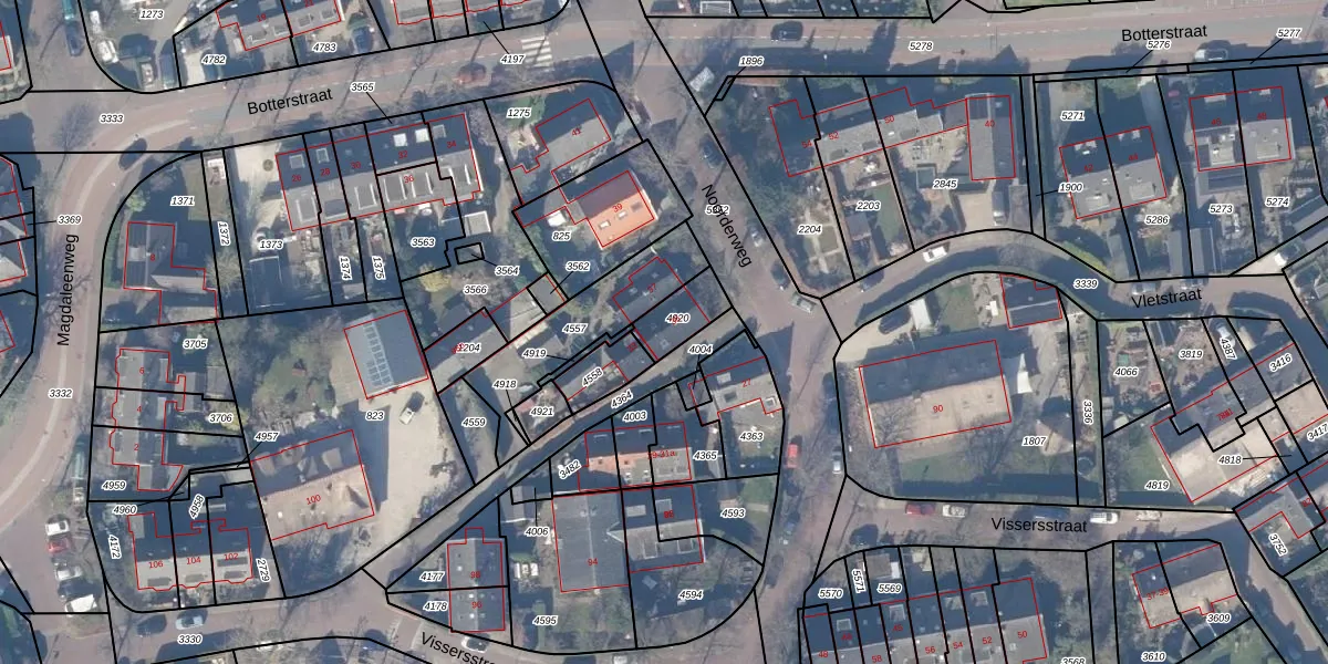 Het perceel waarop Noorderweg 35 staat heeft een oppervlakte van 97 m². Dit is een klein perceel. De perceeloppervlakte wordt geregistreerd door het Kadaster. Gedetailleerde informatie over de maten van dit perceel kunt u vinden in het rapport Kadastrale kaart met maatvoering van Noorderweg 35.