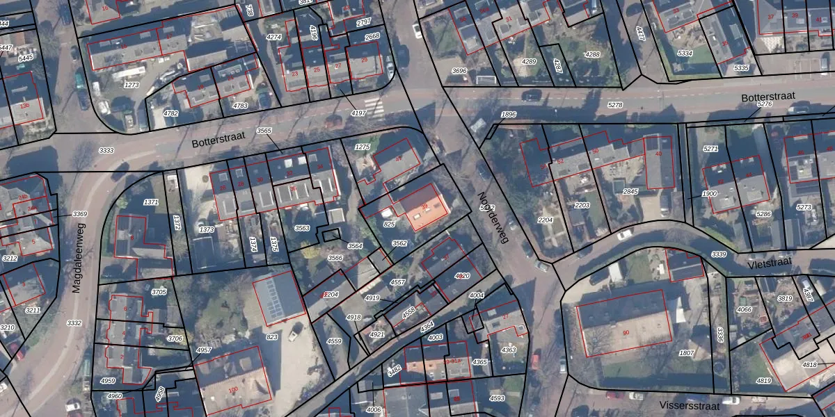 Gebruik de zoekbalk of klik op een perceel voor informatie over de adressen binnen dit perceel.