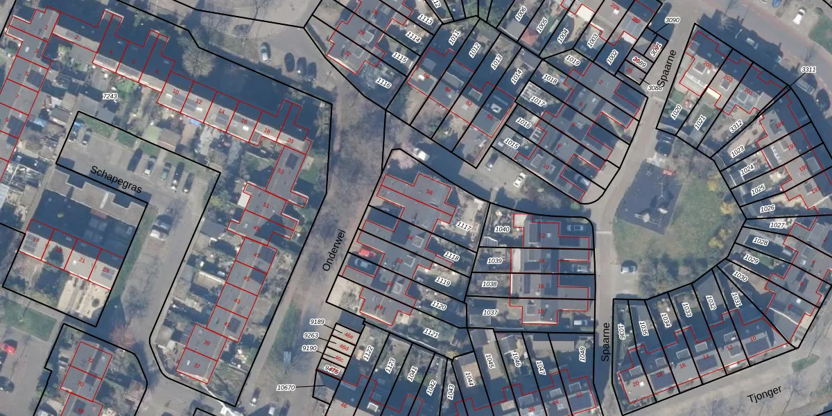 Het perceel waarop Onderwei 56 staat heeft een oppervlakte van 378 m². Dit is een groot perceel. De perceeloppervlakte wordt geregistreerd door het Kadaster. Gedetailleerde informatie over de maten van dit perceel kunt u vinden in het rapport Kadastrale kaart met maatvoering van Onderwei 56.