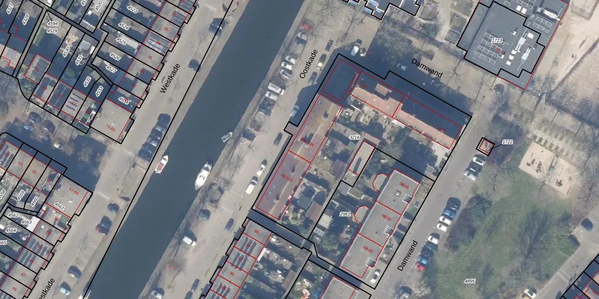 Oostkade 118 is gelegen op kadastraal perceel HZN00E3216. Deze kadastrale aanduiding is uniek en wordt gebruikt door het Kadaster om eigendomsrechten en andere zakelijke rechten vast te leggen. Het perceel maakt onderdeel uit van de kadastrale gemeente Huizen.