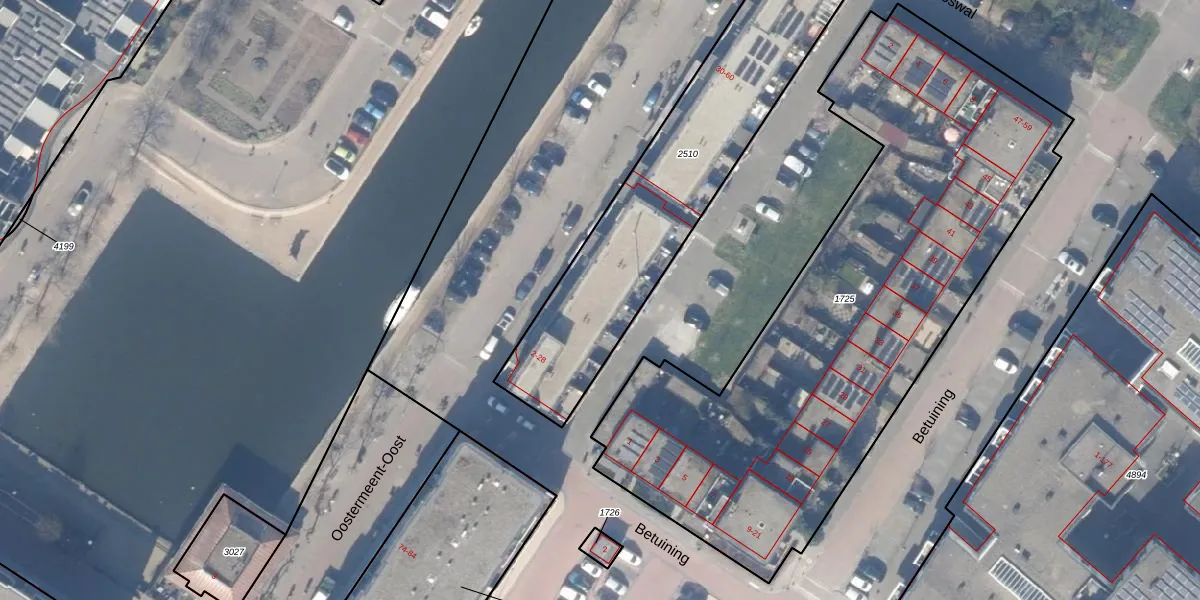 Het perceel waarop Oostkade 22 staat heeft een oppervlakte van 1210 m². Dit is een zeer groot perceel. De perceeloppervlakte wordt geregistreerd door het Kadaster. Gedetailleerde informatie over de maten van dit perceel kunt u vinden in het rapport Kadastrale kaart met maatvoering van Oostkade 22.