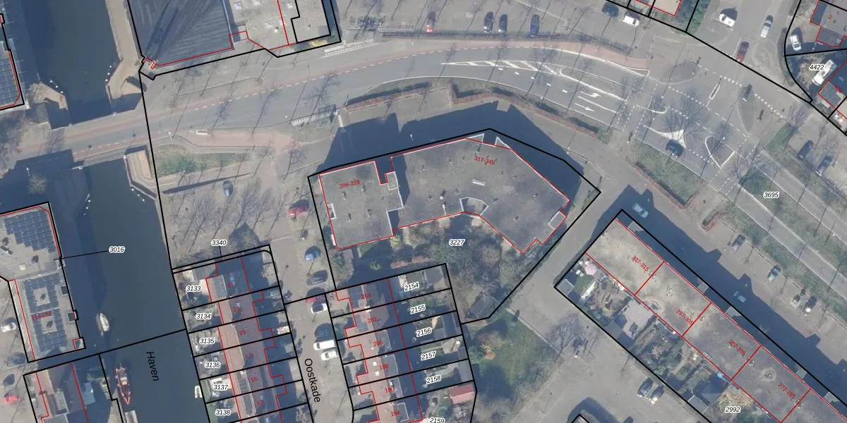 Oostkade 252 is gelegen op kadastraal perceel HZN00E3227. Deze kadastrale aanduiding is uniek en wordt gebruikt door het Kadaster om eigendomsrechten en andere zakelijke rechten vast te leggen. Het perceel maakt onderdeel uit van de kadastrale gemeente Huizen.