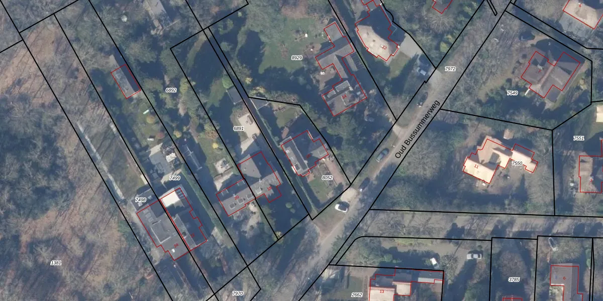 Oud Bussummerweg 16 is gelegen op kadastraal perceel HZN00B8052. Deze kadastrale aanduiding is uniek en wordt gebruikt door het Kadaster om eigendomsrechten en andere zakelijke rechten vast te leggen. Het perceel maakt onderdeel uit van de kadastrale gemeente Huizen.
