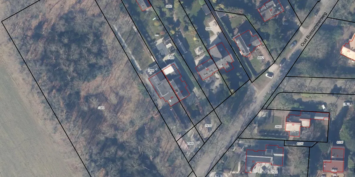 Oud Bussummerweg 22 is gelegen op kadastraal perceel HZN00B7499. Deze kadastrale aanduiding is uniek en wordt gebruikt door het Kadaster om eigendomsrechten en andere zakelijke rechten vast te leggen. Het perceel maakt onderdeel uit van de kadastrale gemeente Huizen.