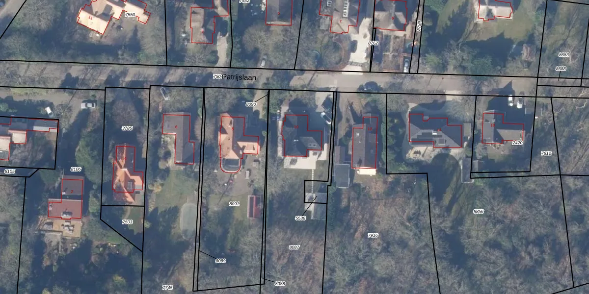 Het perceel waarop Patrijslaan 10 staat heeft een oppervlakte van 1860 m². Dit is een zeer groot perceel. De perceeloppervlakte wordt geregistreerd door het Kadaster. Gedetailleerde informatie over de maten van dit perceel kunt u vinden in het rapport Kadastrale kaart met maatvoering van Patrijslaan 10.