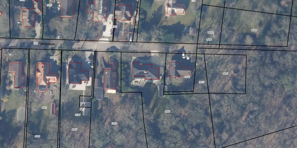 Het perceel waarop Patrijslaan 14 staat heeft een oppervlakte van 2855 m². Dit is een zeer groot perceel. De perceeloppervlakte wordt geregistreerd door het Kadaster. Gedetailleerde informatie over de maten van dit perceel kunt u vinden in het rapport Kadastrale kaart met maatvoering van Patrijslaan 14.