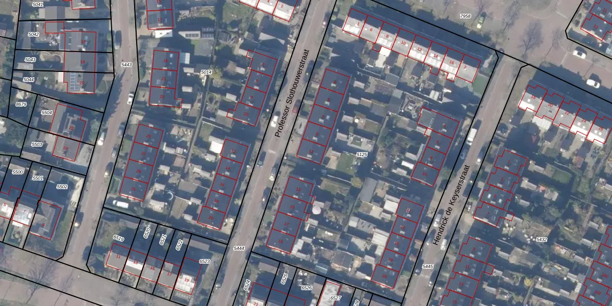 Professor Slothouwerstraat 11 is gelegen op kadastraal perceel HZN00B5125. Deze kadastrale aanduiding is uniek en wordt gebruikt door het Kadaster om eigendomsrechten en andere zakelijke rechten vast te leggen. Het perceel maakt onderdeel uit van de kadastrale gemeente Huizen.