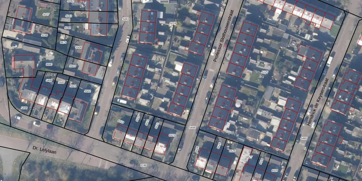 Professor Slothouwerstraat 16 is gelegen op kadastraal perceel HZN00B5014. Deze kadastrale aanduiding is uniek en wordt gebruikt door het Kadaster om eigendomsrechten en andere zakelijke rechten vast te leggen. Het perceel maakt onderdeel uit van de kadastrale gemeente Huizen.