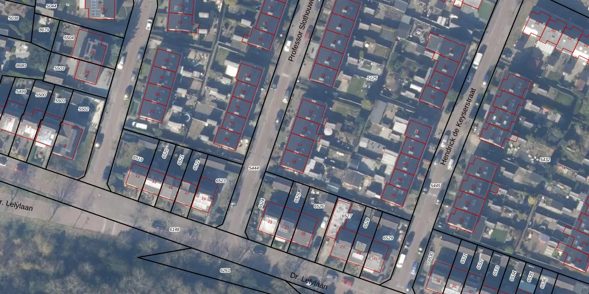 Het perceel waarop Professor Slothouwerstraat 17 staat heeft een oppervlakte van 4813 m². Dit is een zeer groot perceel. De perceeloppervlakte wordt geregistreerd door het Kadaster. Gedetailleerde informatie over de maten van dit perceel kunt u vinden in het rapport Kadastrale kaart met maatvoering van Professor Slothouwerstraat 17.