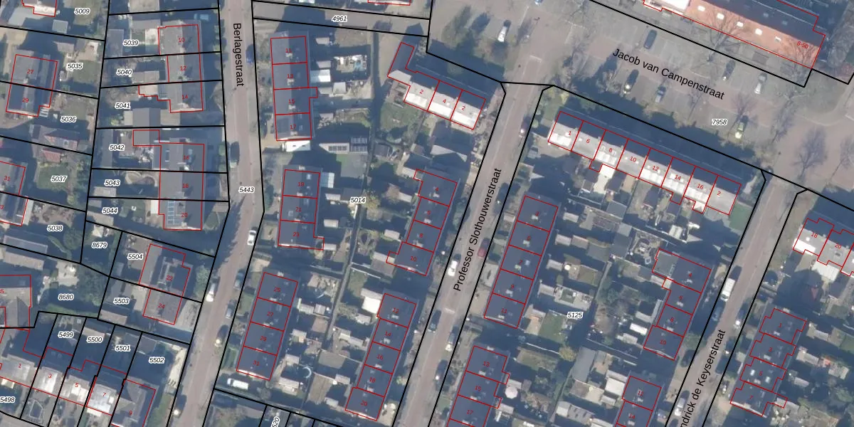 Professor Slothouwerstraat 6 is gelegen op kadastraal perceel HZN00B5014. Deze kadastrale aanduiding is uniek en wordt gebruikt door het Kadaster om eigendomsrechten en andere zakelijke rechten vast te leggen. Het perceel maakt onderdeel uit van de kadastrale gemeente Huizen.
