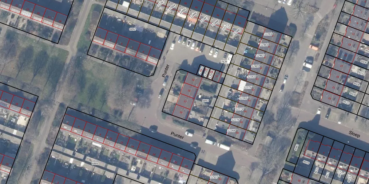 Het perceel waarop Punter 15 staat heeft een oppervlakte van 640 m². Dit is een groot perceel. De perceeloppervlakte wordt geregistreerd door het Kadaster. Gedetailleerde informatie over de maten van dit perceel kunt u vinden in het rapport Kadastrale kaart met maatvoering van Punter 15.
