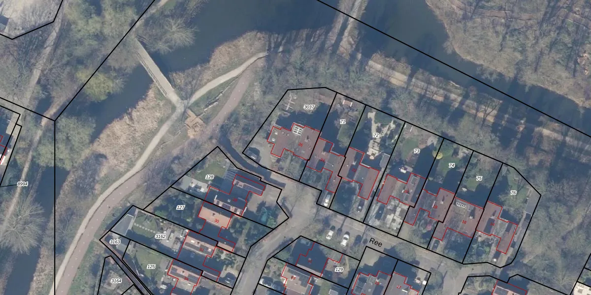 Het perceel waarop Ree 26 staat heeft een oppervlakte van 562 m². Dit is een groot perceel. De perceeloppervlakte wordt geregistreerd door het Kadaster. Gedetailleerde informatie over de maten van dit perceel kunt u vinden in het rapport Kadastrale kaart met maatvoering van Ree 26.