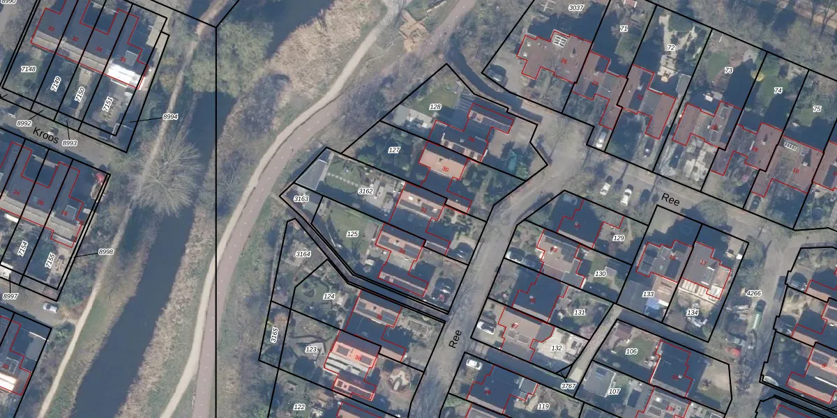Het perceel waarop Ree 32 staat heeft een oppervlakte van 490 m². Dit is een groot perceel. De perceeloppervlakte wordt geregistreerd door het Kadaster. Gedetailleerde informatie over de maten van dit perceel kunt u vinden in het rapport Kadastrale kaart met maatvoering van Ree 32.