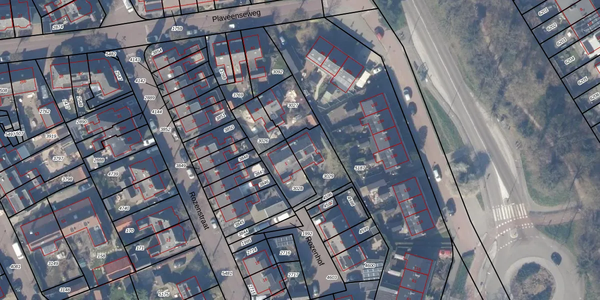 Gebruik de zoekbalk of klik op een perceel voor informatie over de adressen binnen dit perceel.