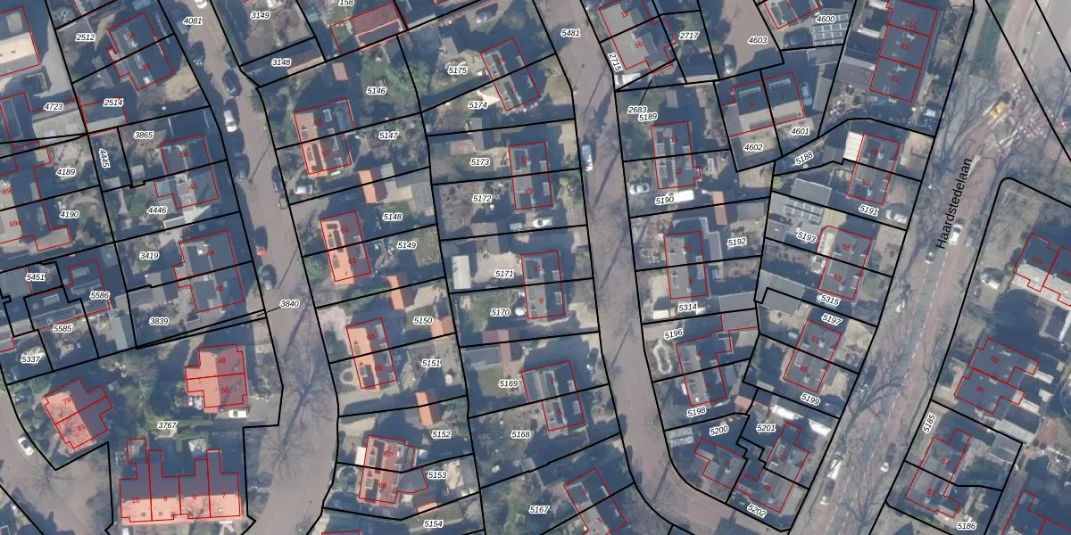 Gebruik de zoekbalk of klik op een perceel voor informatie over de adressen binnen dit perceel.