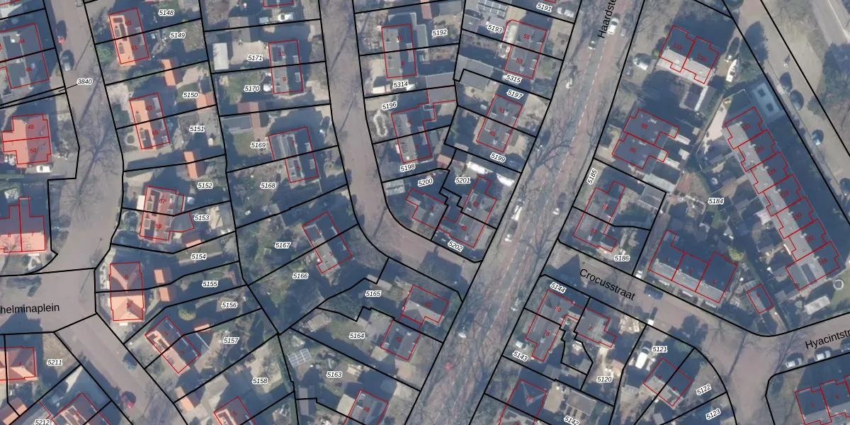 Het perceel waarop het adres ligt is HZN00-D-5200. De afkorting 'HZN00' staat voor kadastrale gemeente Huizen. De gemiddelde perceelgrootte in Huizen is 1437,02 m². Dit perceel is kleiner: de perceeloppervlakte bedraagt 170 m². Het grootste perceel in de kadastrale gemeente is 4,26 km². Het kleinste perceel heeft een oppervlakte van 0 m². Dit is het enige adres dat aanwezig is op het perceel. De huidige grenzen van het perceel zijn digitaal in de Basisregistratie Kadaster (BRK) geregistreerd op 20-12-2010.