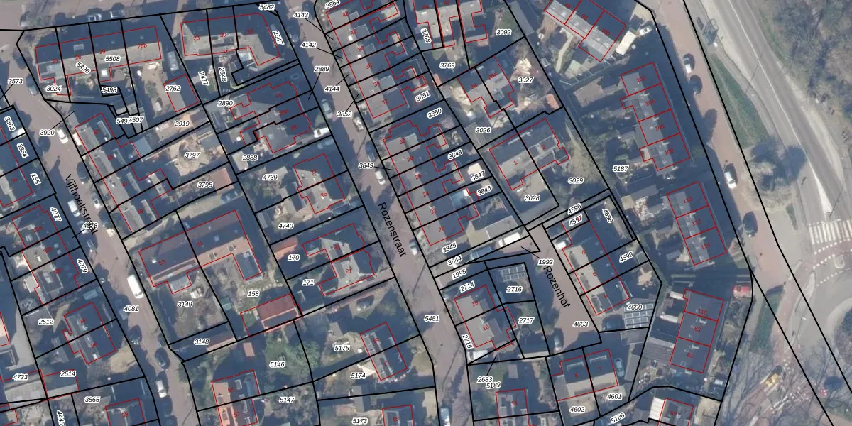 Rozenstraat 22 is gelegen op kadastraal perceel HZN00D3846. Deze kadastrale aanduiding is uniek en wordt gebruikt door het Kadaster om eigendomsrechten en andere zakelijke rechten vast te leggen. Het perceel maakt onderdeel uit van de kadastrale gemeente Huizen.