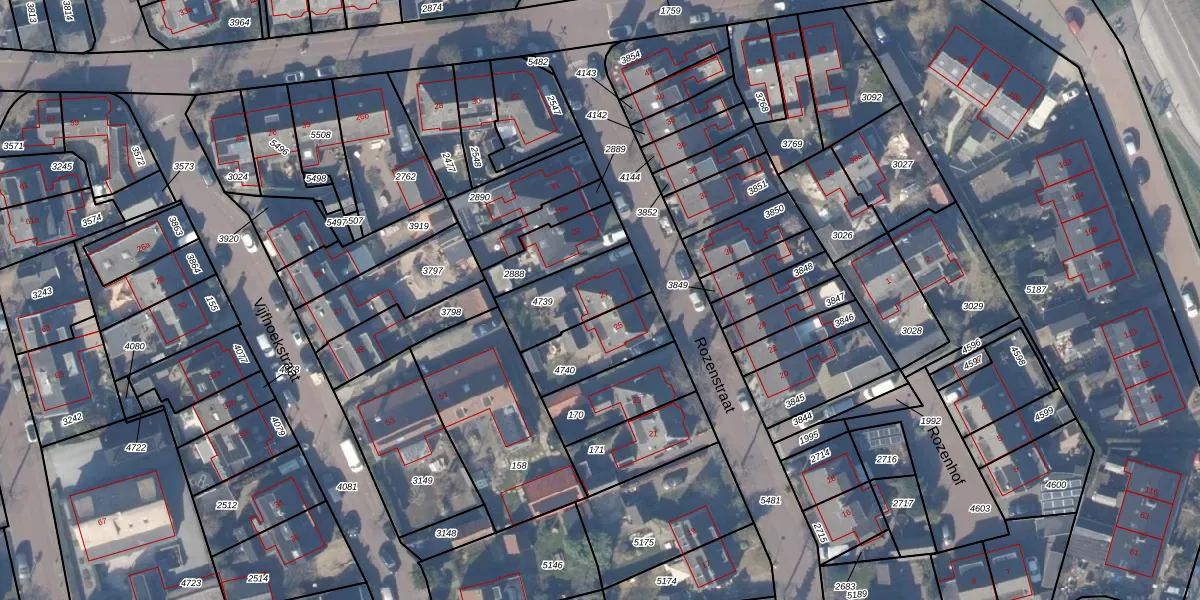 Gebruik de zoekbalk of klik op een perceel voor informatie over de adressen binnen dit perceel.