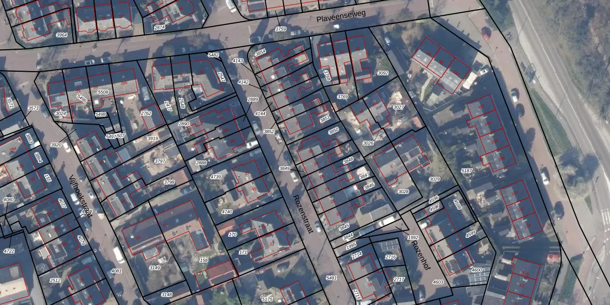 Gebruik de zoekbalk of klik op een perceel voor informatie over de adressen binnen dit perceel.